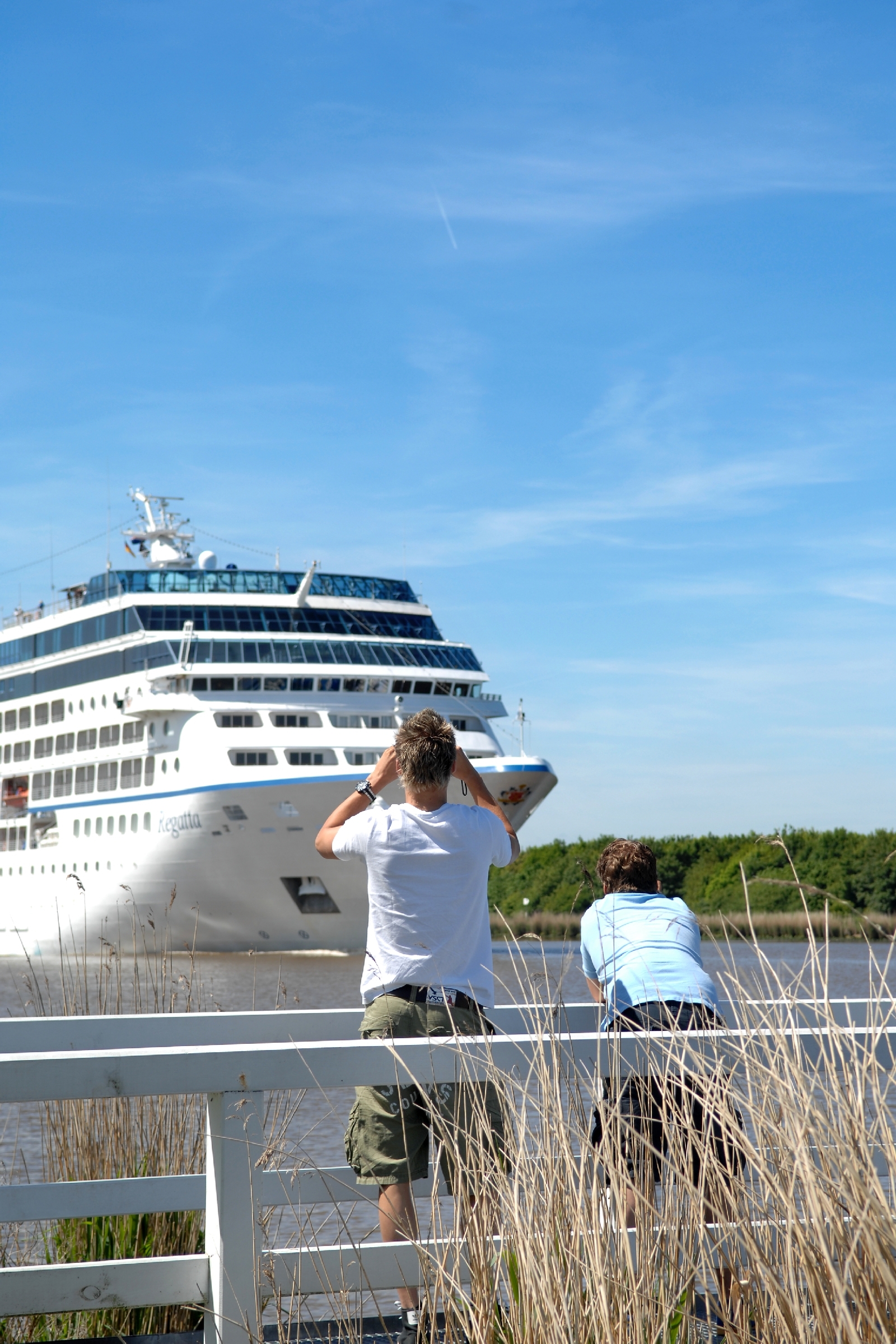 Begegnung mit einem Kreuzfahrer am Nord-Ostsee-Kanal. Foto: TINOK