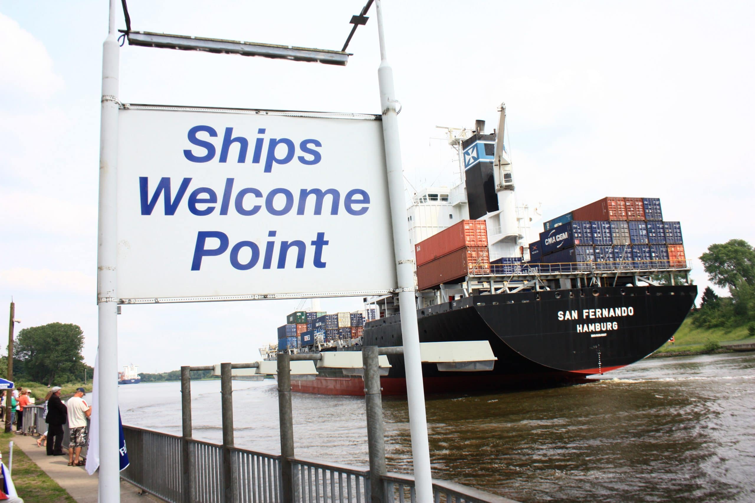 An der Schiffsbegrüßungsanlage in Rendsburg werden alle Schiffe mit der Nationalhymne begrüßt.